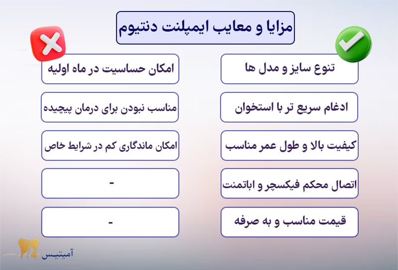 همچنین عارضه هایی مانند عفونت، لق زدن ایمپلنت، احساس درد و جایگذاری اشتباه ایمپلنت در صورت انتخاب دندانپزشک ایجاد می شوند.