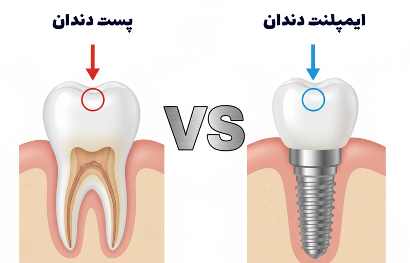 در مقابل، زمانی که ریشه ی دندان تخریب شده، شکسته یا قبلاً کشیده شده باشد، استفاده از پست ممکن نیست و در این حالت ایمپلنت دندانی گزینه ای بسیار مناسبتر است. ایمپلنت با جایگزین کردن ریشهی از دسترفته، پایهای محکم و ماندگار برای نصب روکش یا پروتز فراهم میکند. علاوه بر این، برخلاف پست، ایمپلنت در استخوان فک قرار میگیرد و با تحریک آن، مانع از تحلیل رفتن استخوان میشود؛ موضوعی که از نظر زیبایی، حفظ فرم صورت و عملکرد طولانیمدت اهمیت زیادی دارد. اگرچه درمان با ایمپلنت نیازمند زمان بیشتر و هزینه بالاتری است، اما در بلندمدت، موفقیت و ماندگاری آن بسیار بیشتر از پست دندانی است.