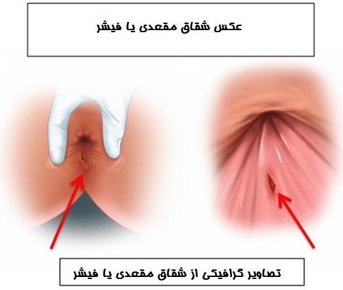 در تصاویر ارایه شده در این عکس چند عکس از شقاق مقعدی به صورت واقعی و گرافیکی ارایه شده است تا با کمک این تصاویر شقاق مقعدی واضح متوجه ناحیه درگیری و نوع درگیری این بیماری شوید.